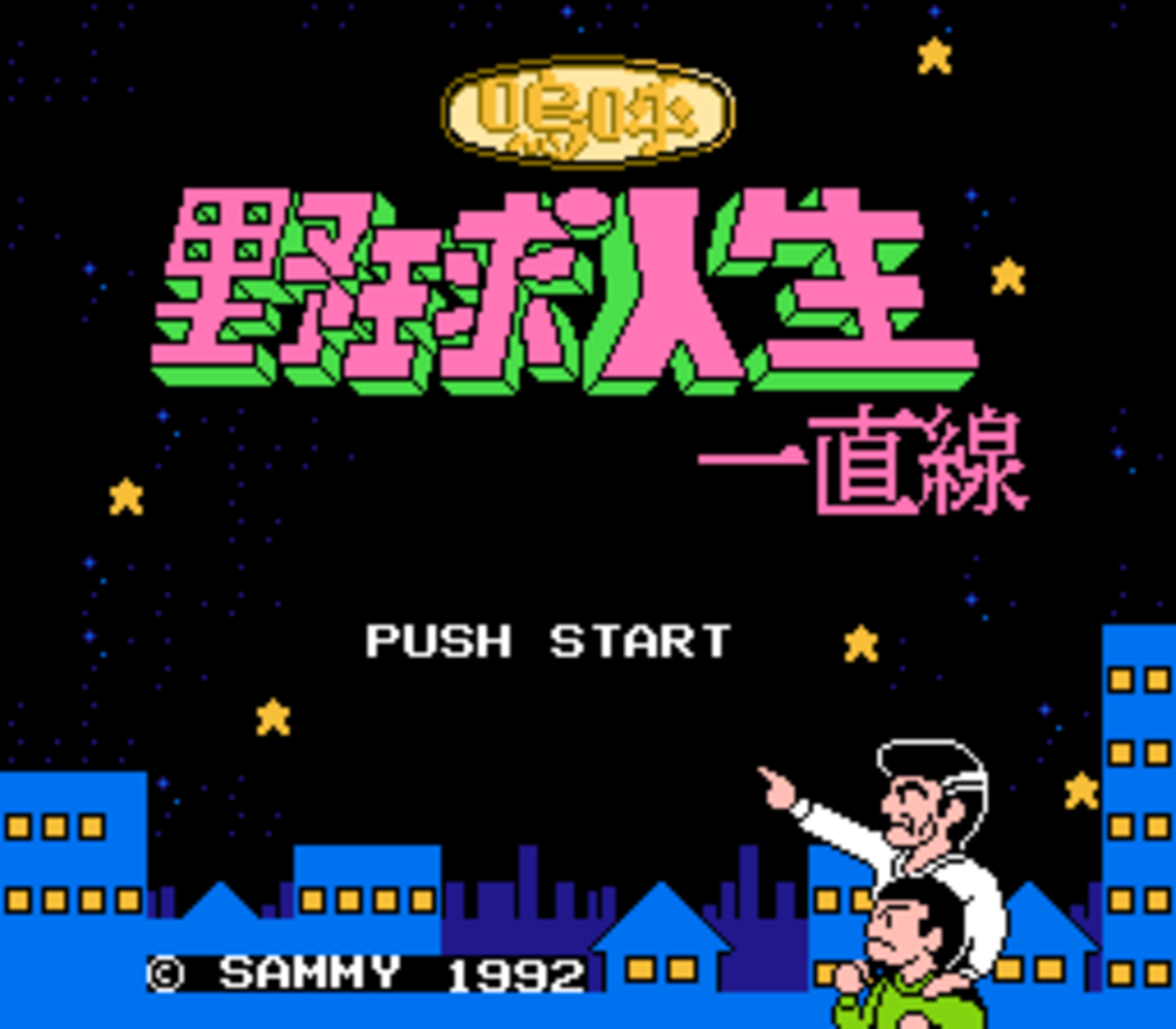 《野球人生(Aa Yakyuu Jinsei Icchokusen/嗚呼!野球人生一直線)》是一款由 Sammy Studios 于 1992 年 12 月 25 日为 Famicom 平台开发并发行的虚拟生活和体育模拟游戏。
