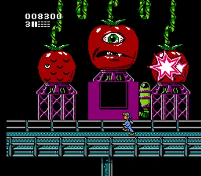 这是一款横版卷轴平台跳跃游戏,阻止番茄杀手的主要方法是跳到它们身上。被踩到后,它们要么会爆裂开来,要么会逃跑,要么会变成更小的番茄碎片。游戏中还有能量道具可以补充查德的生命值。