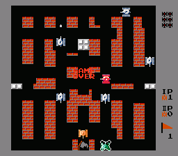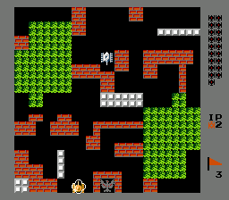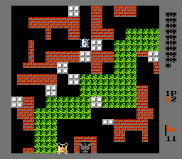 在此游戏里,玩家操作一辆黄色或绿色坦克,以消灭所有电脑控制的敌军坦克并保护己方基地为目标。基地的图标是一支老鹰。每一关有 20 辆敌军坦克。如果老鹰被射中或玩家的所有坦克全部被击毁,游戏便告终止。