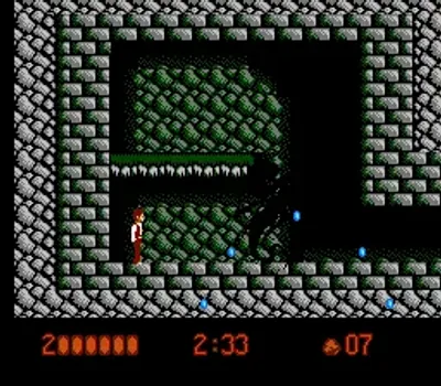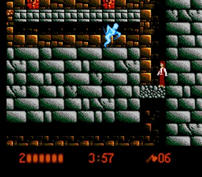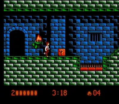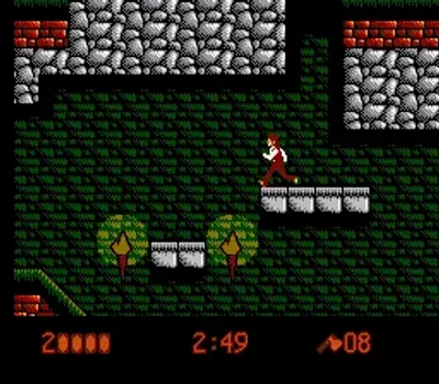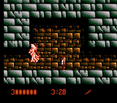 乔纳森·哈克可以左右移动、跳跃并使用武器攻击,最基本的武器是一把匕首。屏幕上的状态显示包括哈克的生命值、关卡倒计时以及当前使用的武器。关卡中散落着问号箱(类似于马里奥游戏中的问号箱),攻击这些问号箱可以获得各种强化道具,包括恢复生命值、增加倒计时以及新的武器。这些新武器包括斧头、匕首和霰弹枪。问号箱还可以作为平台,帮助玩家到达其他区域并击败敌人。每个关卡分为两个部分:“白天”和“夜晚”。这两个部分是完全不同的关卡,类似于关卡1-a和1-b。哈克必须跳跃到各种平台和障碍物上,并在关卡中击败小怪。夜间关卡的终点通常由一个首领怪物把守,必须击败它才能继续前进。