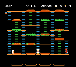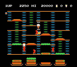 游戏中你将扮演厨师彼得·佩珀(Peter Pepper),他被传送到了一个巨型汉堡的世界。彼得·佩珀的目标是通过踩踏食材,直到它们掉落到下一层,从而完成汉堡的每一层。但是,有些食物碎片会阻止他,让他永远无法再为顾客提供美食。为了自卫,彼得·佩珀可以向敌人脸上撒胡椒粉,将它们冻结在原地,从而继续前进。更高的关卡会带来全新的关卡设计、更快的敌人以及更多需要组合的食材。