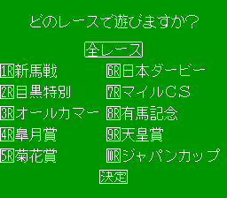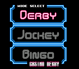 《竞马大赛场(Casino Derby/カジノダービー)》是一款 Party Room 21 发行于 NES 的赛马游戏。