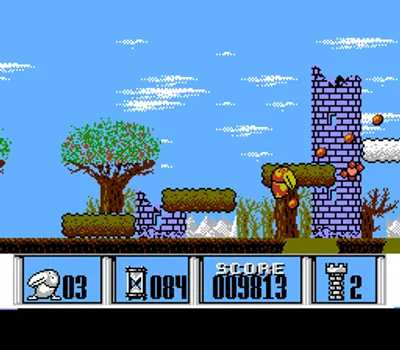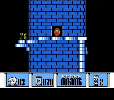 游戏中玩家将化身为一只可爱的大嘴鸟(美版为神秘绿色生物),开启惊险刺激的攀塔之旅。游戏采用革命性的伪3D旋转特效,让8座高塔栩栩如生地呈现在您眼前。在攀登过程中,您需要灵活跳跃躲避障碍,机智应对各种敌人,最终成功登顶并引爆高塔!独特的画面表现力与创新的游戏机制,让这款作品成为红白机平台上不可多得的视觉盛宴,其技术成就堪比《星之卡比》系列。