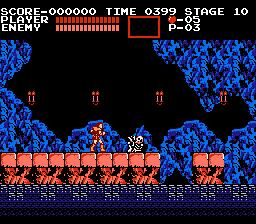 《恶魔城》是一款典型的 8 位机平台游戏:游戏包含六个关卡,以严格的线性流程进行。玩家操控主角西蒙·贝尔蒙特,他的主要攻击方式是使用鞭子,鞭子可以通过在游戏过程中获得的特殊道具来延长。此外,玩家还可以获得各种“副武器”,这些副武器提供不同的攻击方式。西蒙通过打破城堡各处的烛台、火炬和假墙来收集爱心,这些爱心可以用来激活他当时拥有的任何副武器。西蒙一次只能携带一种副武器。《恶魔城》的六个关卡都以一场 Boss 战结束:这些 Boss 通常取材于恐怖文学或传说,包括弗兰肯斯坦的怪物、美杜莎和死神。