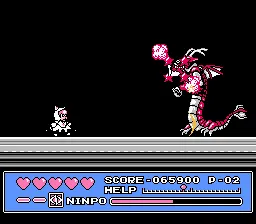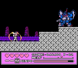 本作是一款继承了“忍者龙剑传”传统的横向卷轴动作游戏,改编自 1990 年由龙之子制作公司和创通公司联合制作的日本动画。游戏共包含 11 个关卡,玩家可以扮演三位秘密忍者小队“猫党”的成员:队长弥太郎,以猫眼剑为主要武器;小队中唯一的女性成员普鲁伦,使用投射物和锋利的指甲进行攻击;以及使用雨伞消灭敌人的“咲ひな”。
