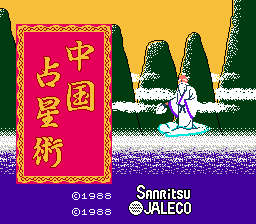 中国占星术(中国占星术)是由 Aicom 为 Famicom 开发的算命游戏,由 Jaleco 于 1988 年底发行。它使用东方神秘主义根据玩家的出生年份来预测玩家的未来。虽然算命并非闻所未闻,但这是第一款提供此类服务的 Famicom“游戏”。然而,紧随其后的是 Induction Produce 的 '89 Dennou Kyuusei Uranai,另一个算命互动模拟器。