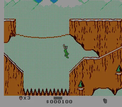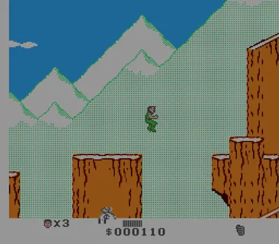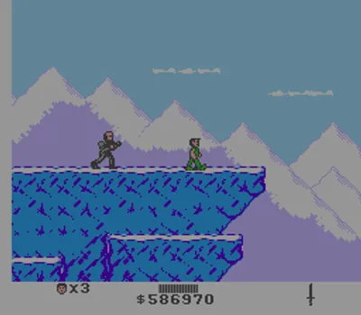 《绝岭雄风》(Cliffhanger)改编自1993年西尔维斯特·史泰龙主演的同名电影。主角盖布·沃克是一位高山搜救专家,他收到附近坠毁飞机的求救信号。然而,飞机上实际上载着恐怖分子,他们劫持了一大批现金。游戏采用横版动作玩法。玩家可以行走、奔跑、跳跃、出拳和踢腿。此外,他还可以根据情况完成一些特殊动作,例如跨越悬挂在两座悬崖之间的绳索。游戏中最大的威胁之一是自然环境,盖布必须抵御狼群和鸟类的袭击、悬崖和建筑物上掉落的积雪以及落石的威胁。