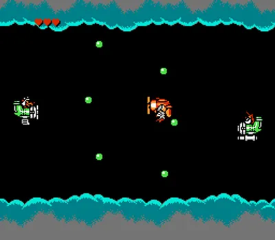 《航空小英雄(Disney's TaleSpin)》是一款横版射击游戏,玩家在屏幕上从左向右移动。迷你海鸭可以发射弹丸并改变飞行方向,甚至可以倒飞并从右向左飞行。玩家可以用回收货物所得的金币在每个关卡结束时从机械师“野猫”(Wildcat)处购买升级道具。大多数关卡的最后区域都会有各种奇特的 Boss 生物和装置守护。