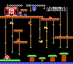 一路上,马里奥会放出咬咬怪、俯冲的紫色小鸟和电火花来阻止小金刚。小金刚可以通过将关卡中收集到的水果扔向敌人来保护自己。水果在连续下落过程中击中的敌人越多,获得的奖励分数就越高。