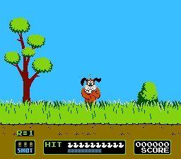 《打鸭子》(Duck Hunt)是红白机平台上的第二款光线枪射击游戏,拥有三种经典模式:A模式单飞鸭、B模式双鸭齐飞,以及C模式的飞碟射击。这款经典游戏还推出过街机版本(VS版),创新性地加入了趣味奖励关卡——当猎犬与鸭子同时跃出草丛时,玩家若误射猎犬,这只可爱的猎犬会拄着拐杖现身抗议,为游戏增添了意想不到的幽默互动元素。