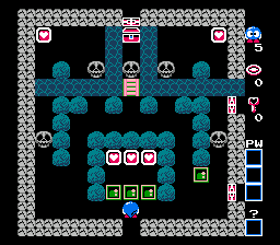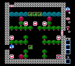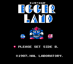 《蛋王子(Egger Land/エッガーランド)》又称“洛洛历险记(Adventures of Lolo)”,是一款益智解谜游戏。玩家将扮演洛洛,一个长着眼睛、胳膊和腿的蓝色球形角色。游戏主线剧情围绕着反派国王艾格展开,他抓走了与洛洛外形相似但颜色为红色的拉拉公主。洛洛的任务是穿越艾格的领地,解开层层谜题,最终救出拉拉。你需要引导洛洛穿过一个由方块组成的房间,并收集房间里所有的心形方块。收集心形方块后,即可打开一个珠宝盒,里面藏有一件物品。成功获得珠宝盒中的物品后,房间里的所有怪物都会被清除,并通往下一个房间。幸运的是,洛洛拥有一件武器:魔法射击。收集特定的心形方块可以获得两发魔法射击。关卡中还有其他类型的障碍物,例如水和翡翠方块(洛洛可以自由推动的绿色方块)。