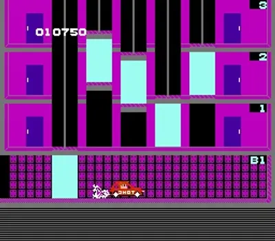 《电梯大战(Elevator Action/エレベーターアクション)》中你将扮演 17 号特工(代号:“奥托”)。你的任务是从一座安全大楼中获取所有绝密文件,然后驾驶位于大楼地下室的接应车辆逃脱。