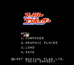 《家庭作曲家(Family Composer/ファミリーコンポーザー)》是基于 FC 磁碟机系统的《Ikinari Musician》升级版提供了更多音乐控制功能,并新增了从零开始创作新歌的功能。得益于软盘运行的特性,《家庭作曲家》现在还允许将最多 6 首歌曲保存到软盘中。