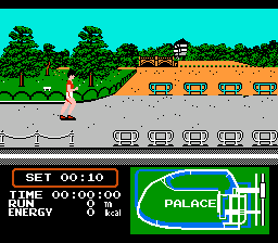《Family Trainer 4 - Jogging Race》是一款FC时代颇具创意的体感游戏,它代表了早期将电子游戏与体育锻炼相结合的尝试