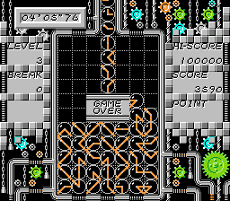 《法米杂志软盘系列04:时间方块(Famimaga Disk Vol. 4 - Clocks/クロックス)》是一款类似俄罗斯方块或方块拼图的下落方块益智游戏。单个时钟面(代表四种角度之一)从顶部落下,玩家需要操控并放置它们,使其组成更大的图形,例如简单的正方形、菱形和沙漏形,以及更复杂的八边形和六边形。