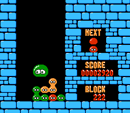 《法米杂志软盘系列05:魔法气泡(Famimaga Disk Vol. 5 - Puyo Puyo/ぷよぷよ)》是一款下落方块益智游戏,与《俄罗斯方块》有相似之处。成对的噗哟(Compile 出品的 RPG 系列《魔导物语》中的怪物)从顶部落入一个圆柱体中。玩家可以左右移动噗哟,旋转它们,并加快它们的下落速度。游戏的目标是让四个相同颜色的噗哟水平或垂直接触。这样就能消除它们。组合超过四个、同时消除多个或引发连锁反应都能获得更高的分数。当堆叠的噗哟到达圆柱体顶部时,游戏结束。