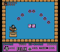 在所有关卡中,菲力猫可以收集猫咪符号来强化武器。收集到一定数量的猫咪符号后,会出现牛奶瓶或爱心。爱心可以强化菲力猫当前的武器。菲利克斯可以使用的武器类型取决于他所处的关卡类型。武器种类繁多,从拳击手套到摩托车、坦克,甚至宇宙飞船,应有尽有。所有比标准武器更高级的武器都有能量条,能量条会随时间减少,可以通过收集牛奶瓶来补充。被敌人击中会降低菲利克斯当前武器的等级。如果他在携带标准武器时被击中,则会失去一条命。