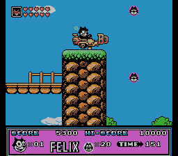 典型的平台跳跃关卡:菲力猫需要跳跃躲避障碍物和裂缝,并使用各种武器消灭敌人,最终到达出口。