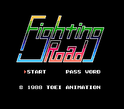 《Fighting Road》(ファイティングロード) 是一款由东映动画于 1988 年底为红白机开发和发行的一对一格斗游戏。玩家必须沿着一条绕河的小路前进,在每一站都与越来越强大的对手作战。每个按钮都会执行一次攻击,按下向上键会使角色跳跃。甚至还有标准的扫腿动作可以绊倒对手。游戏确实有格挡,这是通过在对手进攻时阻止来执行的。该游戏仅限单人游戏,并且缺乏多人游戏模式。比赛之间有很多故事文本和对话。该游戏原计划在美国发行,但被取消,《格斗之路》成为日本独占游戏。