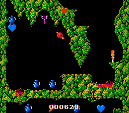 《火焰洛克》(Fire Rock/ファイヤーロック)是一款 FC 磁碟机平台的动作平台游戏。在六个纵向卷轴关卡中,玩家需要击败四位首领,并找到四件关键道具才能解锁出口,同时还要探索迷宫般的门和洞穴。这位野蛮的主角仅配备了投掷火炬,火炬可以升级为同名武器——火岩。所有墙壁都可以攀爬,方便玩家在关卡中进行垂直移动。游戏的一大特色是,收集肉类道具可以提升跳跃高度,而更高的跳跃有时是获取道具或前往关卡新区域的必要条件。