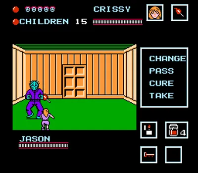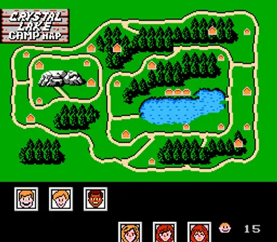 为了节省时间,你可以根据所在位置在六名辅导员之间切换。一旦你进入杰森所在的小屋,游戏就会切换到一个类似3D迷宫的场景,你必须用收集到的物品攻击杰森。当他受到足够的伤害后,他会逃跑,但过一会儿又会拉响警报并进入另一间小屋。