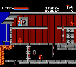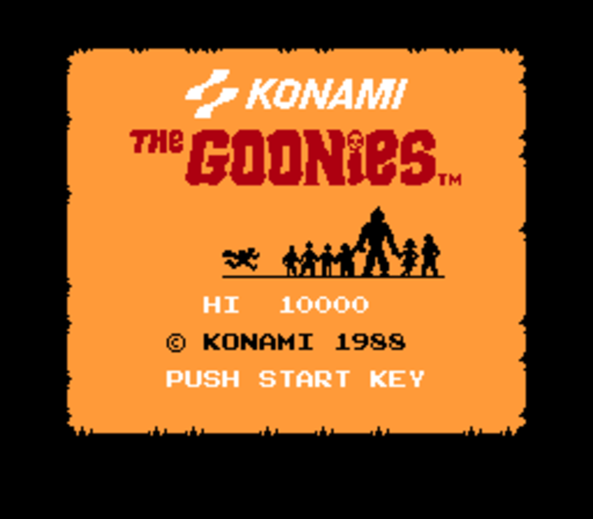 《七宝奇谋(Goonies/グーニーズ)》改编自 1985 年的同名电影。一群来自“古恩码头”(Goon Docks)街区的年轻人,为了避免房屋被收回,踏上了寻找独眼威利(One-Eyed Willie)遗失宝藏的旅程。不幸的是,宝藏被埋在臭名昭著的弗拉泰利帮(Fratelli Gang)的藏身之处。弗拉泰利帮是一个冷酷无情的犯罪家族,他们正被法律追捕。玩家将扮演患有哮喘的米奇(Mikey),他必须在时间耗尽之前找到宝藏并救出其他古恩宝藏成员。