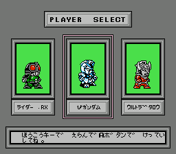 游戏中有三位可操作角色分别是假面骑士 BLACK RX、牛高达(RX-93 ν(读“new”)高达)和泰罗奥特曼。游戏采用体力系统。攻击方式仅限于拳打脚踢等近距离攻击,但通过获取强化道具,可以暂时进行远距离攻击。玩家以运动的方式在地图上前进,并通过击败敌方将领来通关。与敌人的战斗是沿途逐一进行的,因此不存在所谓的“一击必杀的小人物”。