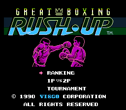 《大拳击 RUSH UP(Great Boxing - Rush Up/グレートボクシング RUSH UP)》是一款模拟拳击比赛的竞技游戏,它由 Pixel 开发,Romstar 于 1990 年 12 月 7 日发行。