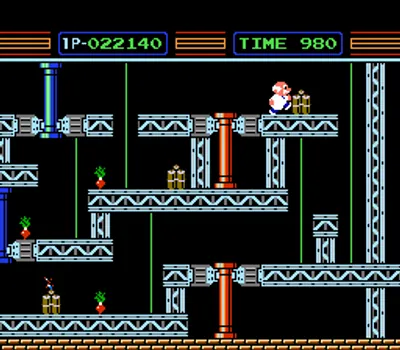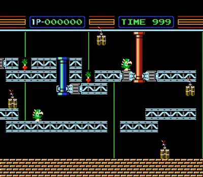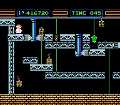 在《机器人 Gyromite 组件(Family Computer Robot Gyromite Set/ジャイロセット)》这款游戏中,你需要帮助一位疯狂科学家在时间耗尽前拆除实验室里所有的炸药!机器人罗布(ROB)会协助你,移动挡路的红蓝柱子。如果你觉得在实验室里找到路还不够,那就更要小心那些四处游荡、试图阻止你完成任务的致命小怪斯米克(Smicks)。如果你找到萝卜,就把它捡起来喂给斯米克,这样你就能安全地通过它们。游戏还有第二个变体模式,你需要为一位梦游的疯狂科学家清理道路,让他安全回家。