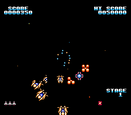《太空射击传(Gyruss/ジャイラス)》是一款由科乐美(Konami)开发并于 1983 年发行的街机射击游戏。该游戏在美国由 Centuri 公司授权发行,并移植到众多游戏主机和家用电脑平台。《太空射击传》是冈本嘉树(Yoshiki Okamoto)继《Time Pilot》之后为科乐美设计的第二款也是最后一款游戏。由于薪酬纠纷,他在游戏发行后被解雇,不久后加入卡普空(Capcom),并在那里创作了《1942》和初代《街头霸王》(Street Fighter)系列游戏。本作为发行于 1988 年的 FC 磁碟机版本。