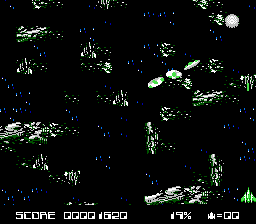 这款游戏的亮点在于,你需要摧毁沿途的彗星。每一颗未被击中的彗星和飞船都会坠落地球,对地球造成破坏。彗星造成的破坏比敌舰更大。如果地球的损伤达到 100%,游戏结束。每获得 2000 分,地球的损伤就会修复 1%。