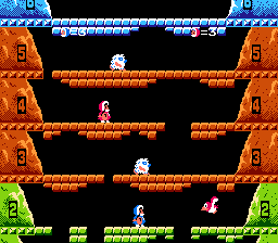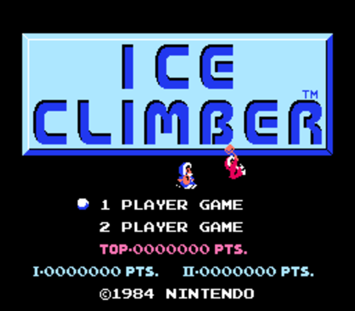 《敲冰块(Ice Climber/アイスクライマー)》是任天堂第一世代主机 FC 上的一款游戏。它是 1985 年 FC 销量第五高的游戏,总销量约为 100 万份。该游戏作为 NES 主机的首发游戏之一登陆美国市场。在《敲冰块》中,玩家需要使用锤子敲击上方的天花板,不断攀登到山顶,最终到达奖励关卡。虽然并非必须通关奖励关卡并到达山顶,但成功登顶可以获得大量额外积分。
