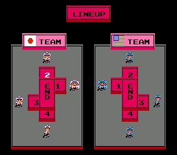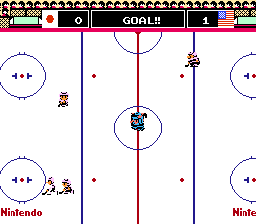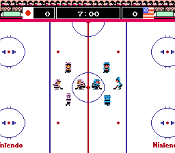 《冰上曲棍球(Ice Hockey/アイスホッケー)》是一款单人或双人动作游戏。首先选择一支队伍并自定义队员。每位队员分为三种类型:矮壮型(速度极快,但防守和射门能力较弱)、高大型(速度较慢,但身体对抗能力强,射门力量出色)或中等体型(速度中等,防守和射门力量一般)。队伍设置完毕后,就可以开始冰球比赛了!游戏采用滚动屏幕来追踪比赛进程,防守时可以选择控制哪位队员(进攻时始终控制持球队员)。队员之间可能会发生冲突,失败者可能会被罚下场。游戏提供五种不同的速度设置,每节比赛时长可选7分钟、10 分钟或 15 分钟。