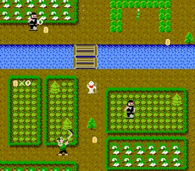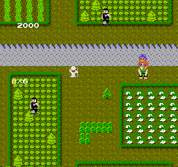 游戏采用俯视视角。玩家可以探索四个不同的地点(关卡),寻找散落在各处的金币(小判)。玩家必须收集所有金币才能进入下一关。在寻找金币的过程中,玩家必须应对敌方忍者和其他想要伤害他们的喽啰。玩家可以投掷镰刀攻击来袭的敌人。他们还可以拾取竹矛等物品作为额外武器,以及提升移动速度和增加一条命的道具。