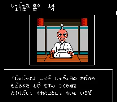 《茶茶丸忍法帐》(Jajamaru Ninpou Chou/じゃじゃ丸忍法帳)作为茶茶丸系列第五代作品,开创性地转型为JRPG玩法,带来全新游戏体验。玩家可选择扮演茶茶丸或樱花公主,展开一场穿越日本的奇幻冒险,体验独特的回合制战斗系统。游戏采用创新的章节式设计,每开启新章节都将从1级重新开始,最终解锁神秘第四章。值得一提的是,本作原计划以《Taro's Quest》(太郎的冒险)为名登陆NES平台,后遗憾取消发行,使其成为游戏史上一个独特而珍贵的记忆。