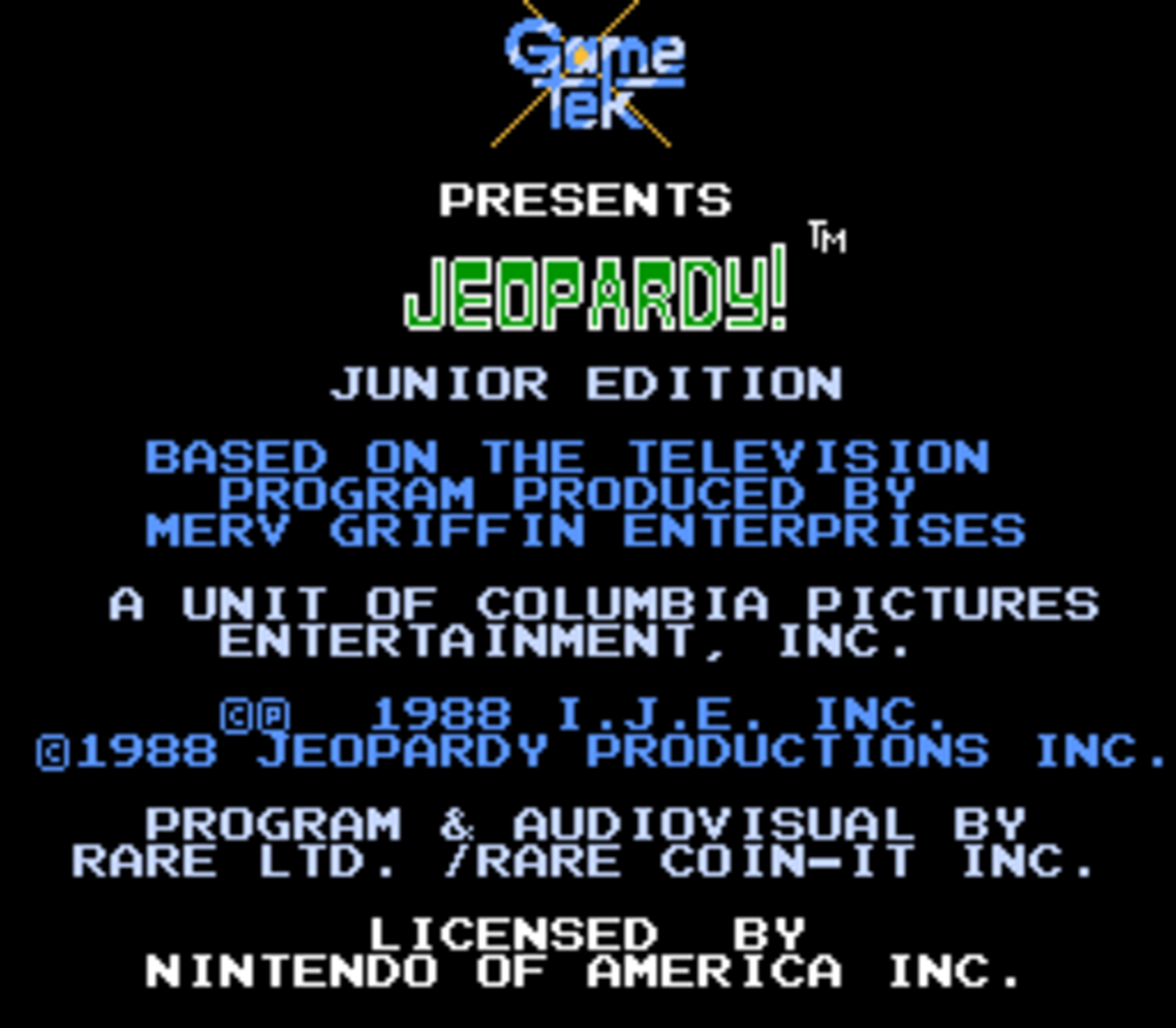 《美国名人智力竞答》(Jeopardy!)是一款突破传统的红白机问答游戏,开创性地支持三人同台竞技。与当时常见的选择题模式不同,这款1988年发行的经典游戏要求玩家手动输入答案,带来更真实的竞答体验。特别值得一提的是,游戏中的"current"特指1990年代末期的时事知识,这种时间错位反而为当代玩家增添了一份独特的怀旧趣味,让这款30多年前的游戏在今天依然充满魅力。本作适合7岁及以上玩家。