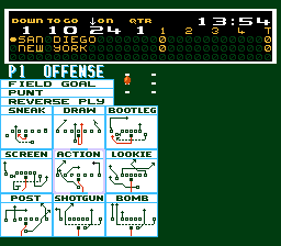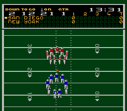 在《约翰·埃尔韦四分卫(John Elway's Quarterback)》这款游戏中,玩家可以选择单人对抗电脑,或者两名玩家进行一场美式橄榄球单场比赛。选择你球队的主场城市(由于没有获得NFL或NFLPA的授权,所以游戏中没有真实的球队和球员),然后与对手进行四节15分钟(加速实时制)的比赛。画面简洁:一支球队身穿蓝色球衣,另一支球队身穿红色球衣。玩家在进攻时控制四分卫,在防守时控制中线卫。游戏采用俯视视角,并进行垂直滚动。玩家可以选择9种进攻战术(主要为传球)和6种防守战术。每队有9名球员。