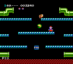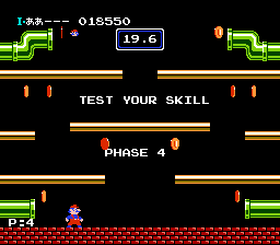 《返回吧!水管玛丽(Kaette Kita Mario Bros./帰ってきたマリオブラザーズ)》是街机游戏《马里奥兄弟》初代 NES 移植版的 FC 磁碟机升级版。游戏共有四种模式。“原版马里奥兄弟”是经典游戏,经过升级后更接近原版街机。玩家现在可以在空中改变方向,游戏还新增了关卡,并增加了保存分数的功能。关卡之间穿插着过场动画和广告,包括日本食品公司长谷园(游戏赞助商)、超级马里奥兄弟麦片,甚至还有其他马里奥游戏的广告,例如不久前发售的《超级马里奥兄弟3》,本质上是一款广告游戏。第二种模式“长谷园世界”与之类似,但每局游戏结束后,玩家可以玩一次老虎机小游戏。根据消除的次数,玩家可以获得更多生命值,并保留分数和阶段数继续游戏。当你达到 100,000 分时,你将获得一次抽奖机会,赢取马里奥扑克牌;达到 200,000 分时,你将获得另一个代码,有机会赢取《超级马里奥兄弟3》游戏。第三个模式“姓名注册”允许双方玩家注册姓名、年龄和性别,以便在打破最高分或使用敬语时显示。第四个模式“公告”中,一只龟壳怪会解释《长谷园世界》的宣传功能。