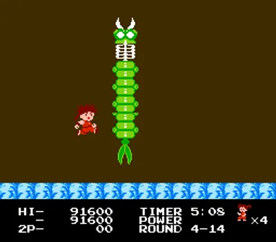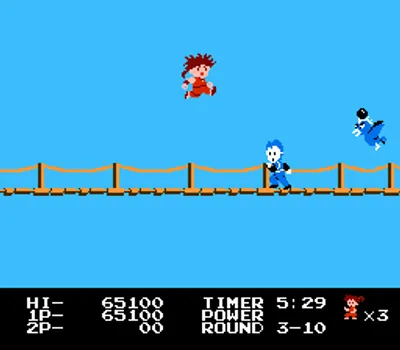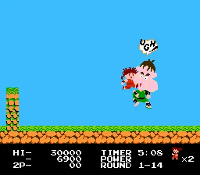 在《洋枪快杰(Kid Niki: Radical Ninja/快傑ヤンチャ丸)》游戏中,小尼基必须救出被石头巫师绑架的爱人玛戈公主。你将装备一把旋转剑,用来清除任何挡路的喽啰。你还可以找到金铃铛(它的钟声可以远距离击杀敌人)、银铃铛(它可以为你创造一个坚不可摧的音波护盾)、迷你尼基(它可以给你一条额外的生命)以及迷你公主(它可以让你免于一次死亡)。你需要穿越七个不同的领域,每个领域最后都有一个Boss。这七个Boss分别是:死亡吐息、尖刺怪、石佛、角魔女、绿虫、疯狂僧侣、武士守卫和石头巫师。救出公主后,你必须在最终的第八关中追击并击败石头巫师。