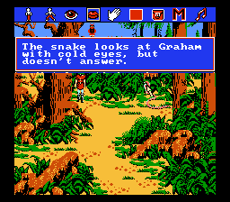 NES版的《国王密使5》保留了基于图标的界面以及早期版本的大部分地点、谜题和对话。为了适应硬件的限制,画面不得不重新绘制,减少了颜色和细节,并且许多区域的美术风格也有所不同。