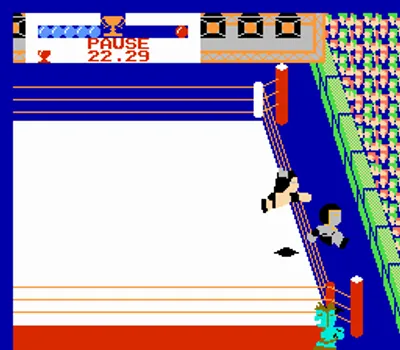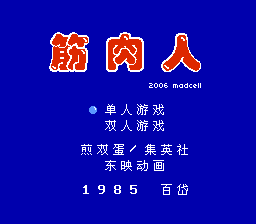 《筋肉人摔角大赛(Kinniku Man Muscle Tag Match/キン肉マン マッスルタッグマッチ)》是一款早期NES摔跤游戏,改编自20世纪80年代风靡一时的同名玩具系列。游戏允许玩家从M.U.S.C.L.E.(Millions of Unusual Small Creatures Lurking Everywhere 的简写,意为“无处不在的数百万个奇特小生物”)宇宙的八位摔跤明星中选择两位进行单人组队赛,或在双人模式下与好友对战。每位摔跤手都拥有一个特殊招式,可以通过收集随机出现在擂台上的能量豆来发动。