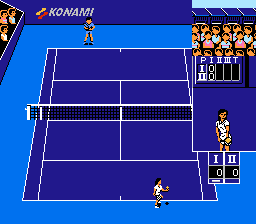 《科乐美网球》为该类型游戏引入的一项特色是发球视角,当玩家发球开始比赛时,该视角会以插图的形式显示。目标是在恰当的时机击球,发出完美的球;过早或过晚都会导致球员击球下网、发球过远,甚至根本无法击球。所有这些情况都算作犯规,球员有一次重新发球的机会,否则对手将得分。
