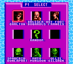 玩家可以从六个角色中选择一个,这些角色包括拉德·卡尔顿(Rad Carlton)、布鲁泽·博加杜斯(Bruiser Bogardus)、热脚弗朗西斯(Hot Foot Francis)、肋骨骨碎(Sparerib Boneapart)、梅奥·蒙逊(Mayo Monsoon)和奥利·奥伊萨克(Ollie Oilsack)。游戏包含多个场景和不同的游戏模式。这些角色被设定为伐木工。比赛在一个固定的屏幕上进行,视角是从高处俯瞰。角色站在滚动的圆木上,投掷一把斧头,斧头的作用类似于球。