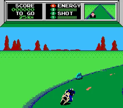 游戏还包含一个关卡编辑器(类似于 Excitebike 中的关卡编辑器),允许创建耐力赛道,但 NES 关闭后这些赛道就会被删除。