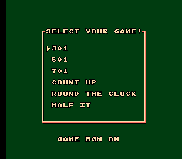 在 301、501 和 701 游戏中,目标是将分数精确地降为零。在 Count Up 游戏中,玩家们比赛看谁能获得最高分。在 Round the Clock 游戏中,玩家必须尝试按顺序击中数字 1 到 12。在 Half It 游戏中,玩家初始得分为 40 分。玩家有三次机会击中指定的数字以增加自己的分数。如果玩家未能击中所有指定数字,其总分将被减半。得分最高的玩家获胜。指定数字包括16、双环、17、18、三环、19、20和靶心。