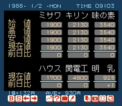 《松本亨股票必胜学》(Matsumoto Tooru no Kabushiki Hisshou Gaku)是FC红白机时代一款极具挑战性的股票投资模拟游戏。游戏以日本著名商业分析师、股票投资畅销书作家松本亨为原型打造,带您亲身体验惊心动魄的股市风云。玩家需要在24个月的限定时间内,将初始100万日元资金增值至1亿日元。游戏真实模拟股票交易场景,每次买卖操作、查阅财经报纸或分析走势图表都会消耗体力值,您可以通过高尔夫等休闲活动恢复精力。这款游戏不仅考验您的投资眼光,更是一场智慧与耐力的双重较量!