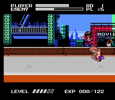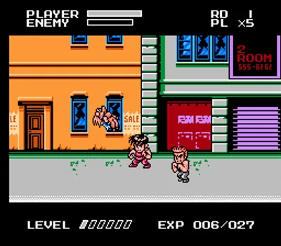 这款游戏是一款横向卷轴格斗游戏,并且仅限单人游戏(与其他《快打旋风》移植版不同)。这款《快打旋风》独有的经验系统也与初代《双截龙》类似,玩家可以通过升级来学习更多招式。所有角色都被压缩成超变形的 8 位图像。画面效果与《热血物语》相似。每个角色都有一个攻击按钮和一个跳跃按钮。同时按下这两个按钮可以释放角色专属的超级技能。玩家还可以通过将自己移动到敌人附近来使出各种抓取和投掷动作。