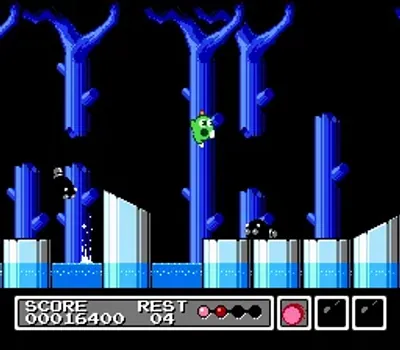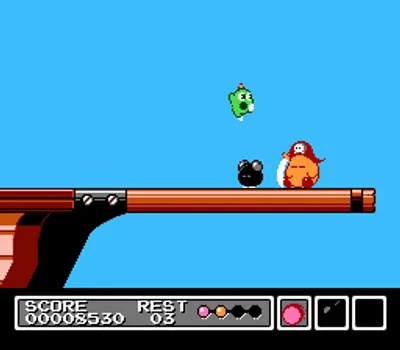 《吉米克!(Gimmick!/ギミック!)》(NES 版本被称为“Mr. Gimmick”,吉米克先生)是 Sunsoft 鲜为人知的作品之一,因为它仅在日本和斯堪的纳维亚半岛发行。色彩鲜艳可爱的画面掩盖了游戏极高的难度,这源于其略显棘手的操控、险峻的地形以及栖息在这个奇异世界中的敌人和 Boss。明亮的视觉效果与 Sunsoft 其他一些游戏通常阴暗严肃的基调截然不同。虽然《吉米克!》在发行时并未获得应有的认可,但它仍然是一部技术上的奇迹,并因突破了 Famicom 的极限而成为一部邪典经典。后来,它于 2002 年 11 月 21 日作为纪念 ☆ 系列 SUNSOFT Vol.6(Memorial☆Series SUNSOFT Vol.6)的一部分在日本重新发行,登陆PlayStation平台。这三个版本因其音质差异而著称,因为最初的 Famicom 版本使用了一款独特且昂贵的音频芯片,这种芯片无法复制。