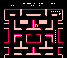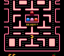 其他选项包括交替的双人模式、某些版本中可调节的奖励生命阈值,以及随着幽灵速度提升和能量器效果减弱而逐渐增加的关卡难度。过场动画会在特定关卡之间播放,关卡顺序会随着难度的提升而循环使用四种不同的迷宫布局。