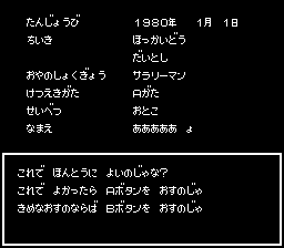 游戏角色设计由森下宏美(Hiromi Morishita)设计,是一款桌游,玩家需要投掷骰子,体验格子上出现的事件,并生存一个世纪(100年)。或许是受到创作者的影响,这款游戏具有一些特点,并且带有浓厚的人生模拟游戏元素。玩家可以决定您的原籍地、家庭结构、父母的职业和家庭经济状况。在游戏过程中,除了掷骰子外,还有一种命令模式,玩家可以选择自己的行动(选择社团活动并加入社团,选择参加资格考试,结婚,与朋友断绝关系,找工作等)。玩家以外的家人和朋友都有生死的概念,游戏参数非常多且详细。